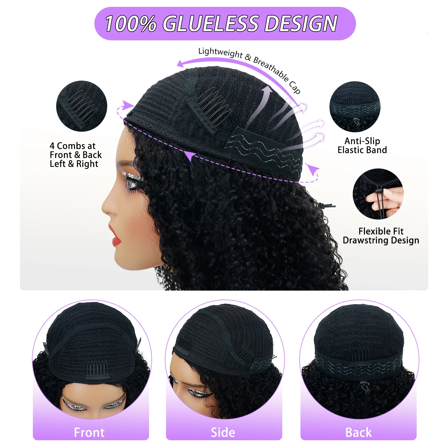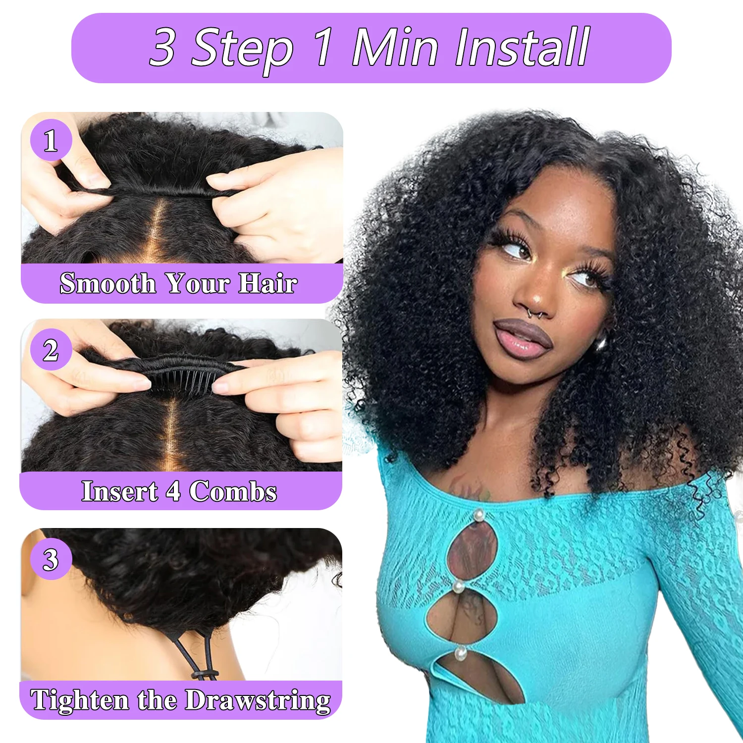 Abijale Half Wigs Human Hair Curly 3 In 1 Human Hair Wig Seamless Flip Over Half Wig Beginner Friendly Curly Wigs for Women